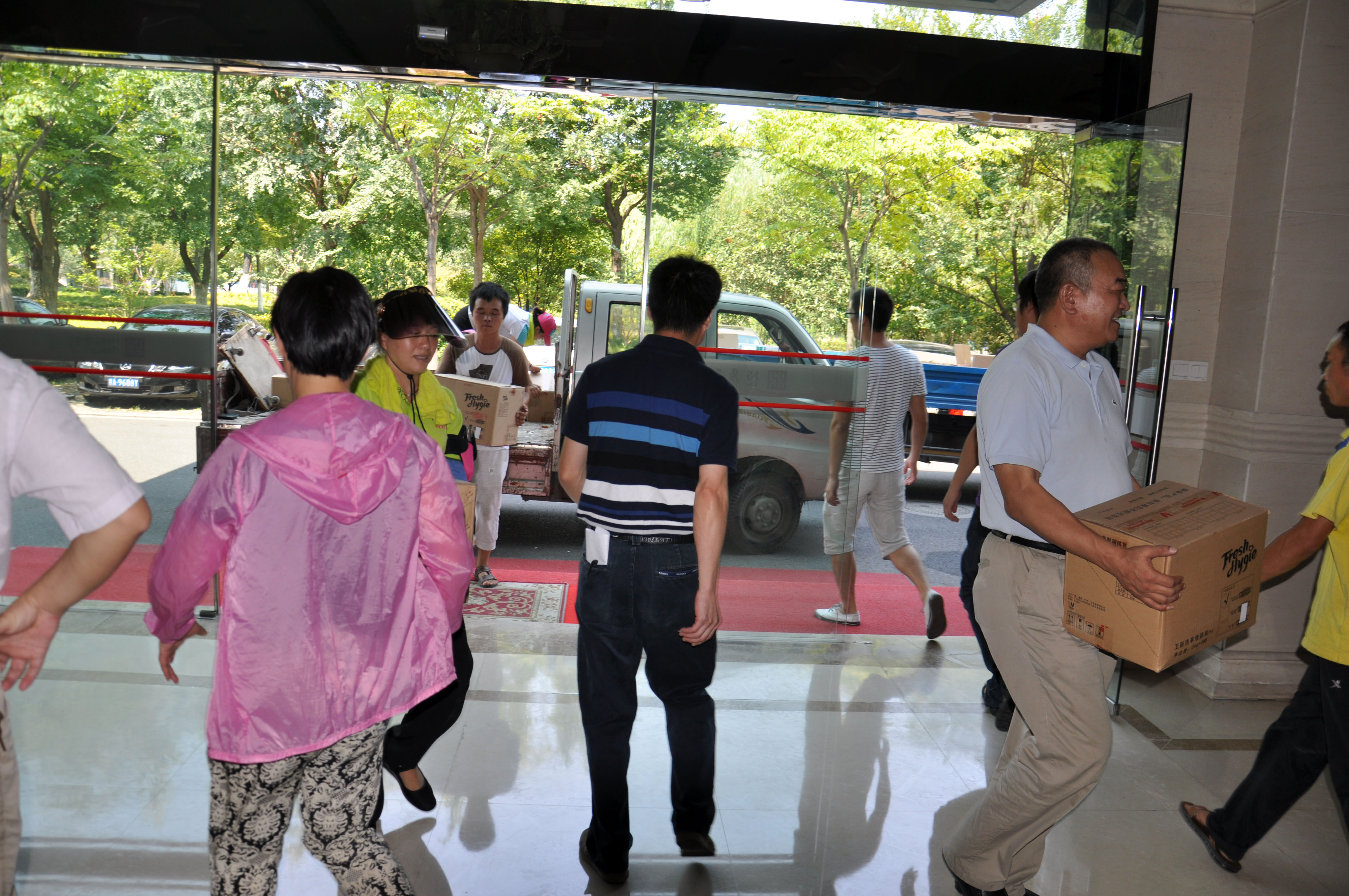 2015年8月5日上午10点半,滨江区总工会党组书记王利君一行冒着烈日高温亲临米兰手机版集团发放清凉慰问品,集团副总裁金再明等领导全程陪同接待。王书记不顾炎热亲自参与物品卸载堆放事宜,并向金总传达了对米兰手机版全体员工的问候,尤其是高温酷暑天仍然奋战在项目一线的员工,希望大家要劳逸结合、保重身体,公司要竭尽全力切实做好防暑降温工作,保障安全生产。金总首先代表公司对区总工会和王书记的亲切慰问表示诚挚的谢意,并表示公司已在同步落实防暑降温举措,也会第一时间将清凉慰问品送至各个项目工地,让一线的员工们感受到来自工会的浓浓关爱之情,感受到劳动者的尊严和光荣。
